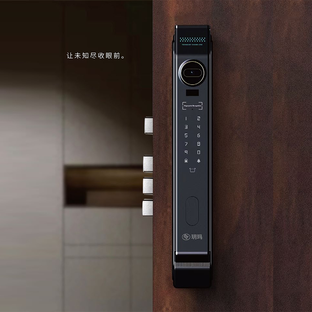 玥玛TM-Q1-猫眼全自动指纹锁家用门锁防盗可视 钻石黑