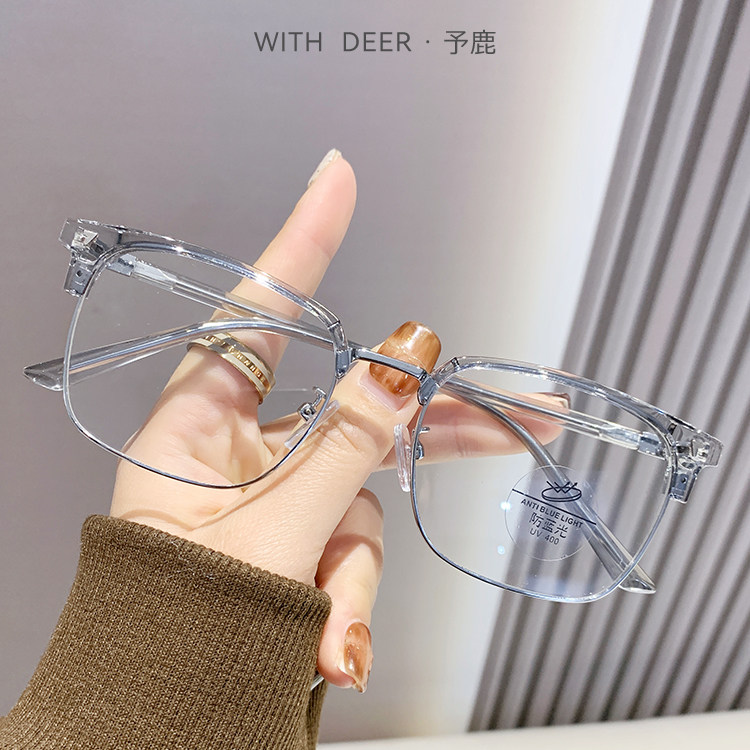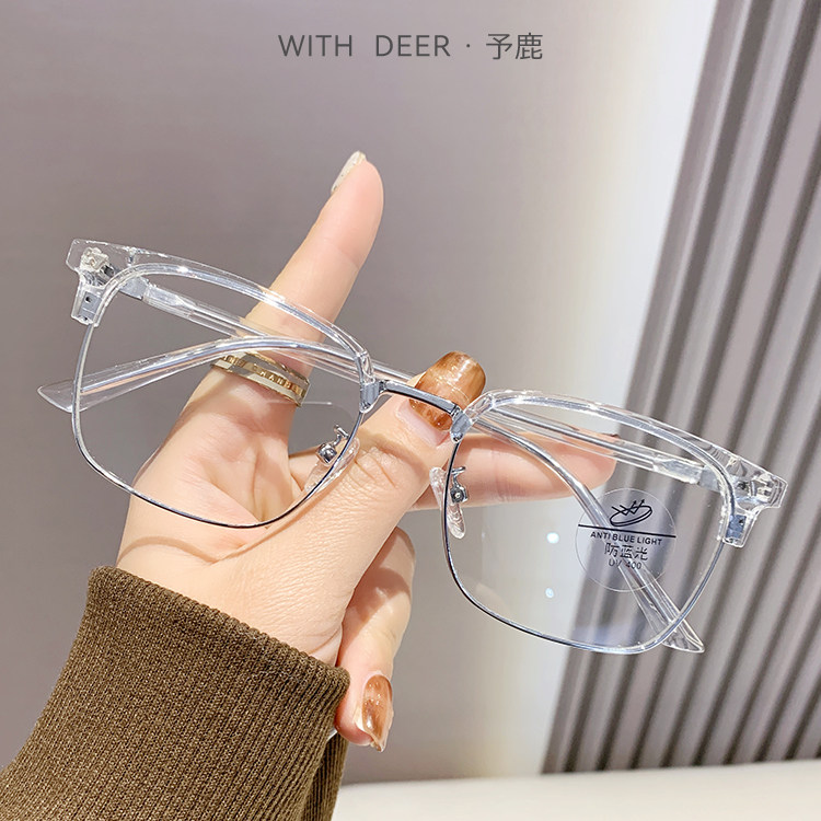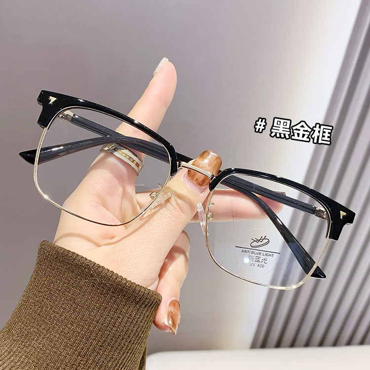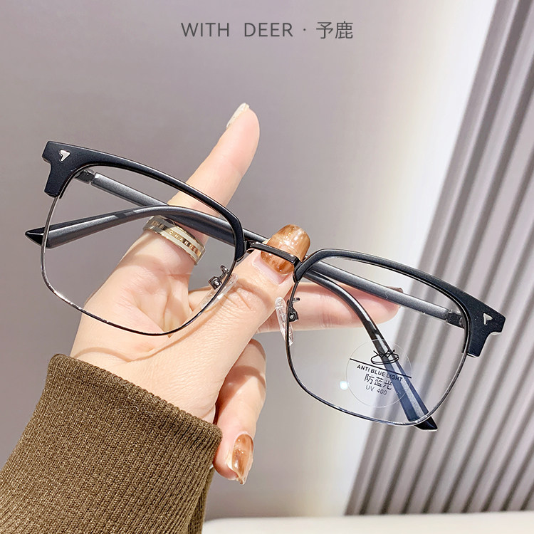 抖音爆款金属半框近视眼镜男眉毛复古眼镜框近视女潮可配度数镜架