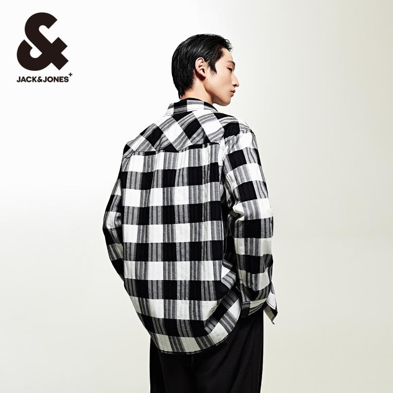 杰克琼斯春季新款纯棉舒适潮流时尚出街宽松长袖格纹衬衫外套男装