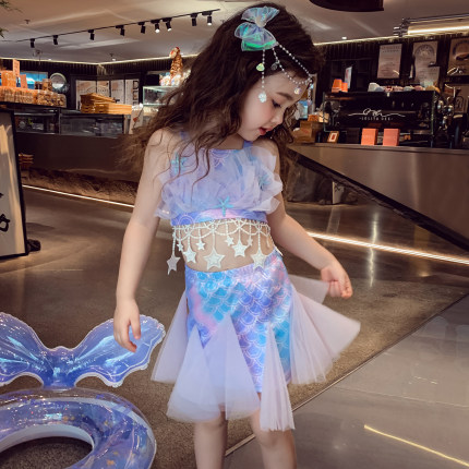 女童美人鱼泳衣夏季2025新款儿童网红分体泳衣套装小女孩公主泳装
