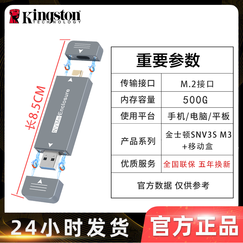 金士顿1T移动固态硬盘2T type-c双接口固态U盘M.2 2230手机电脑