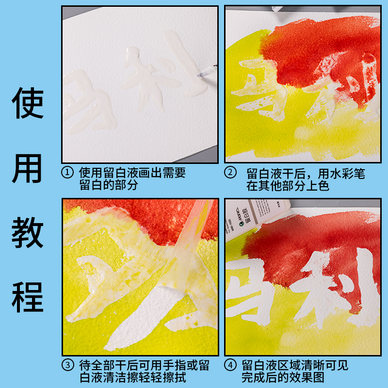 马利留白胶75ml水彩画专用工具颜料遮盖液媒介剂笔式留白液美术生专用流白液色彩固体水彩水粉遮盖液100ml