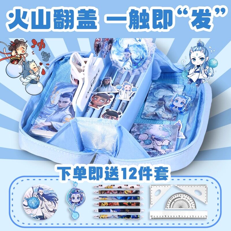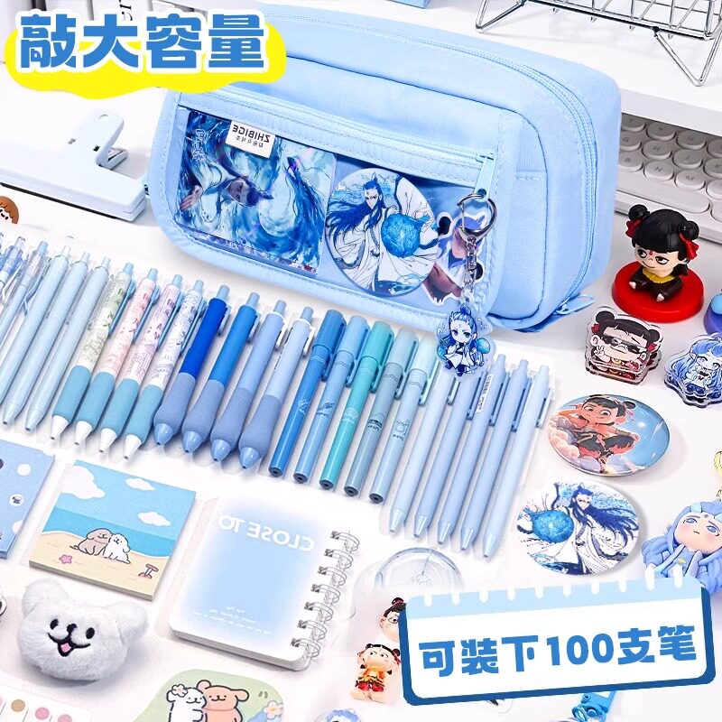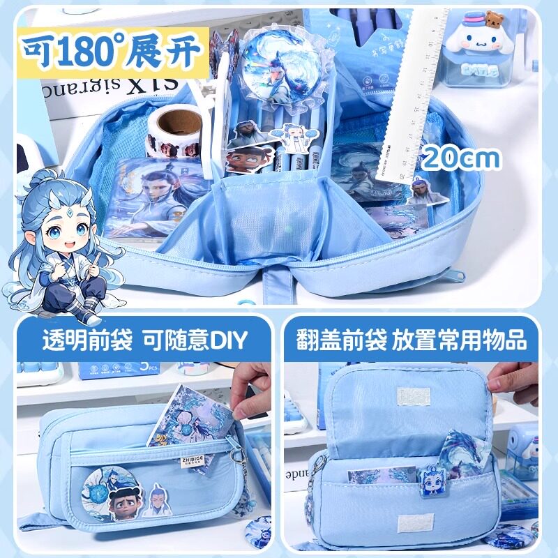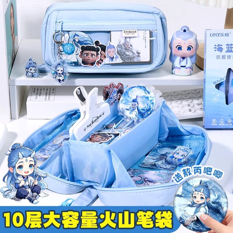 笔袋男孩文具盒款2025新款敖丙大容量一五六年级小学生用哪吒高颜值ins风铅笔盒男生小众蓝色翻盖耐脏纯色