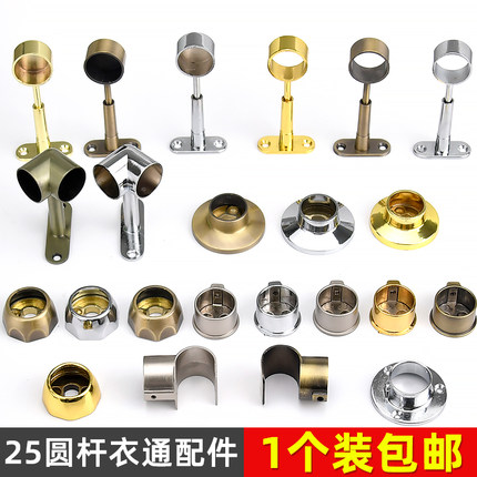 衣柜挂衣杆衣通五金配件加厚法兰底座圆管不锈钢杆圆形固定衣杆托