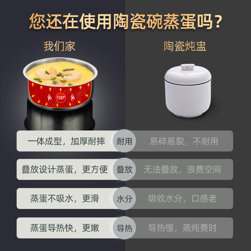 蒸蛋碗304不锈钢水蒸碗蛋羹专用碗带盖家用婴儿小炖盅盘宝宝神器