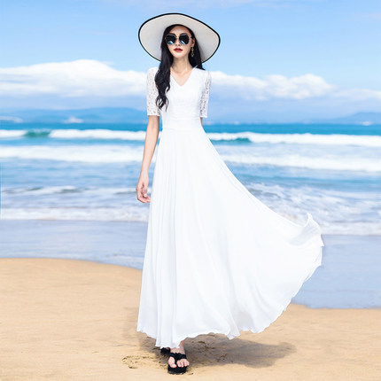白色连衣裙裙飘逸2025新款雪纺长款蕾丝显瘦大摆海边沙滩长裙女夏