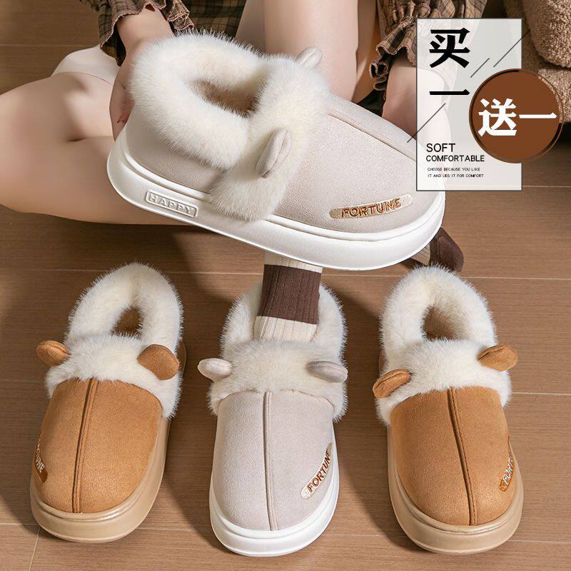 买一送一棉拖鞋女冬季2024新款情侣家居一对保暖外穿包跟加绒棉鞋