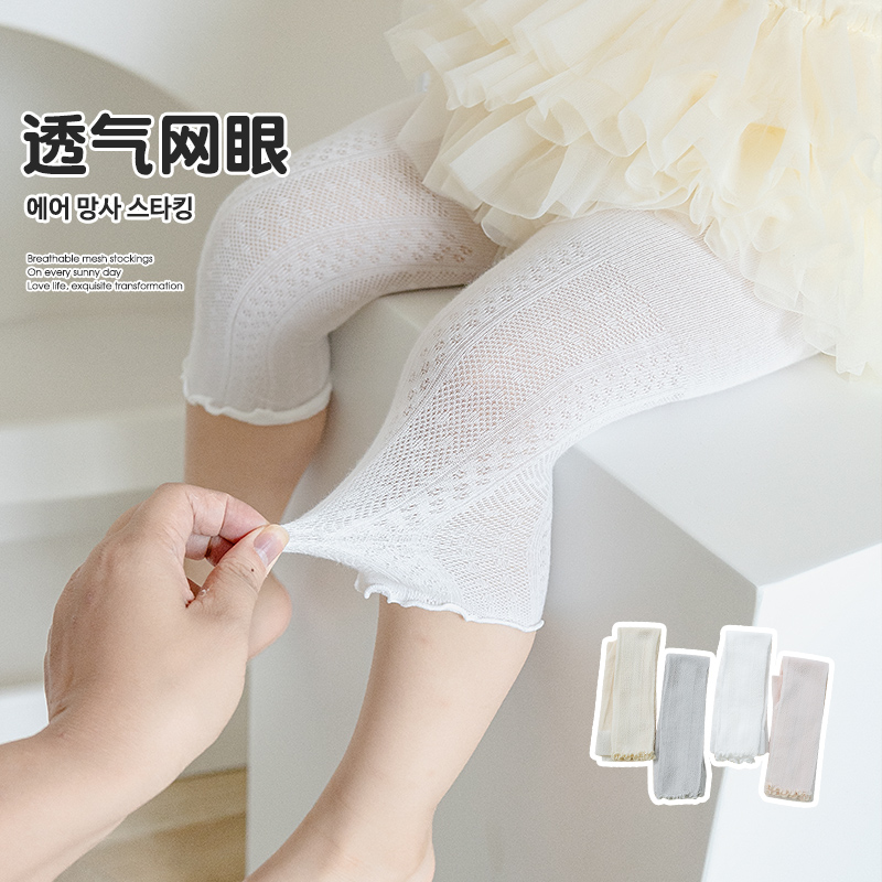 婴儿夏季打底裤宝宝大PP薄款七分裤女童网眼夏天白色公主防蚊袜裤