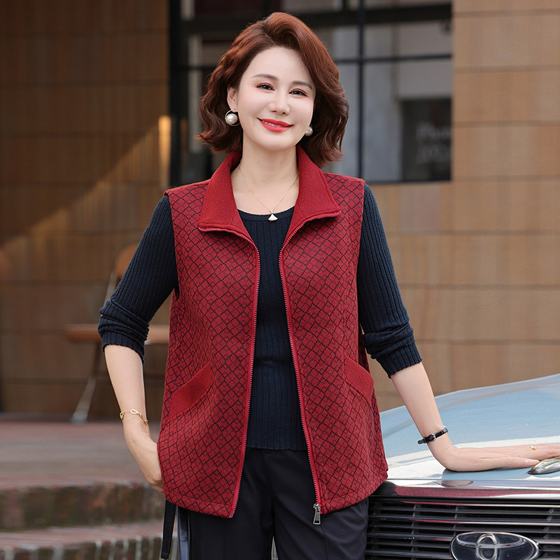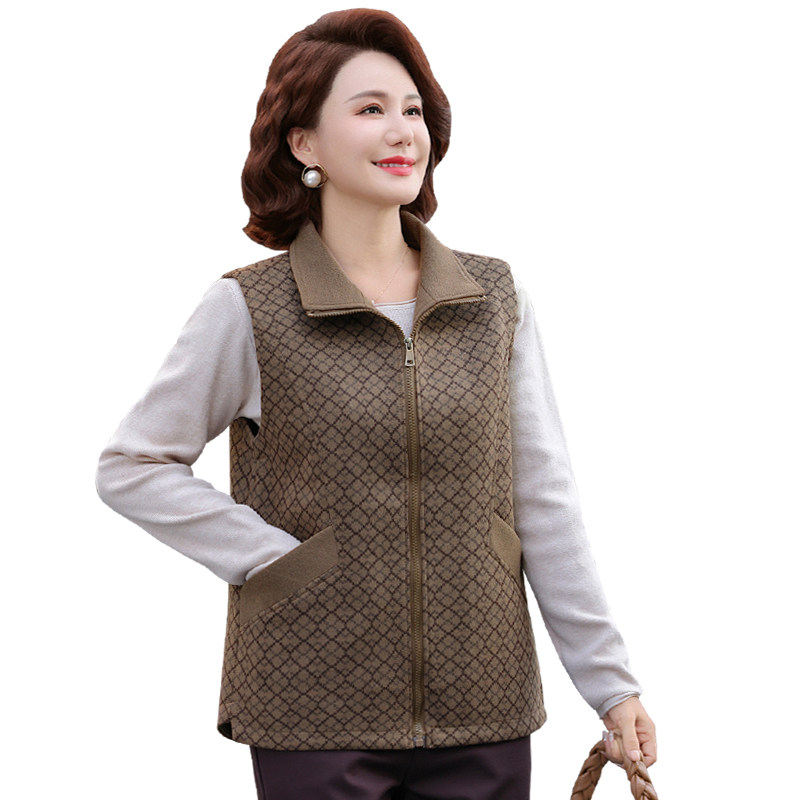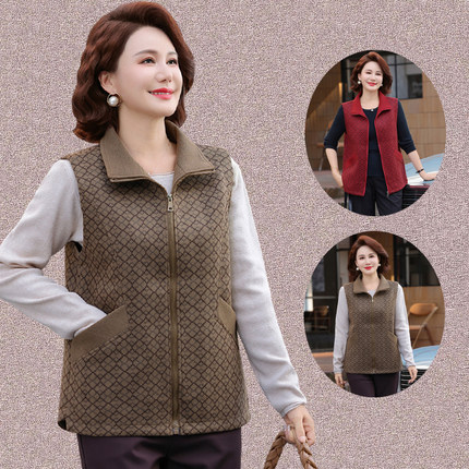 妈妈装春秋薄款马夹中老年女装大码宽松时尚洋气拉链上衣马甲坎肩