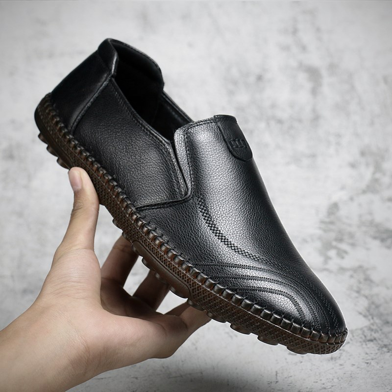皮鞋男休闲真皮头层牛皮男鞋春秋款男士豆豆懒人鞋牛筋软底爸爸鞋