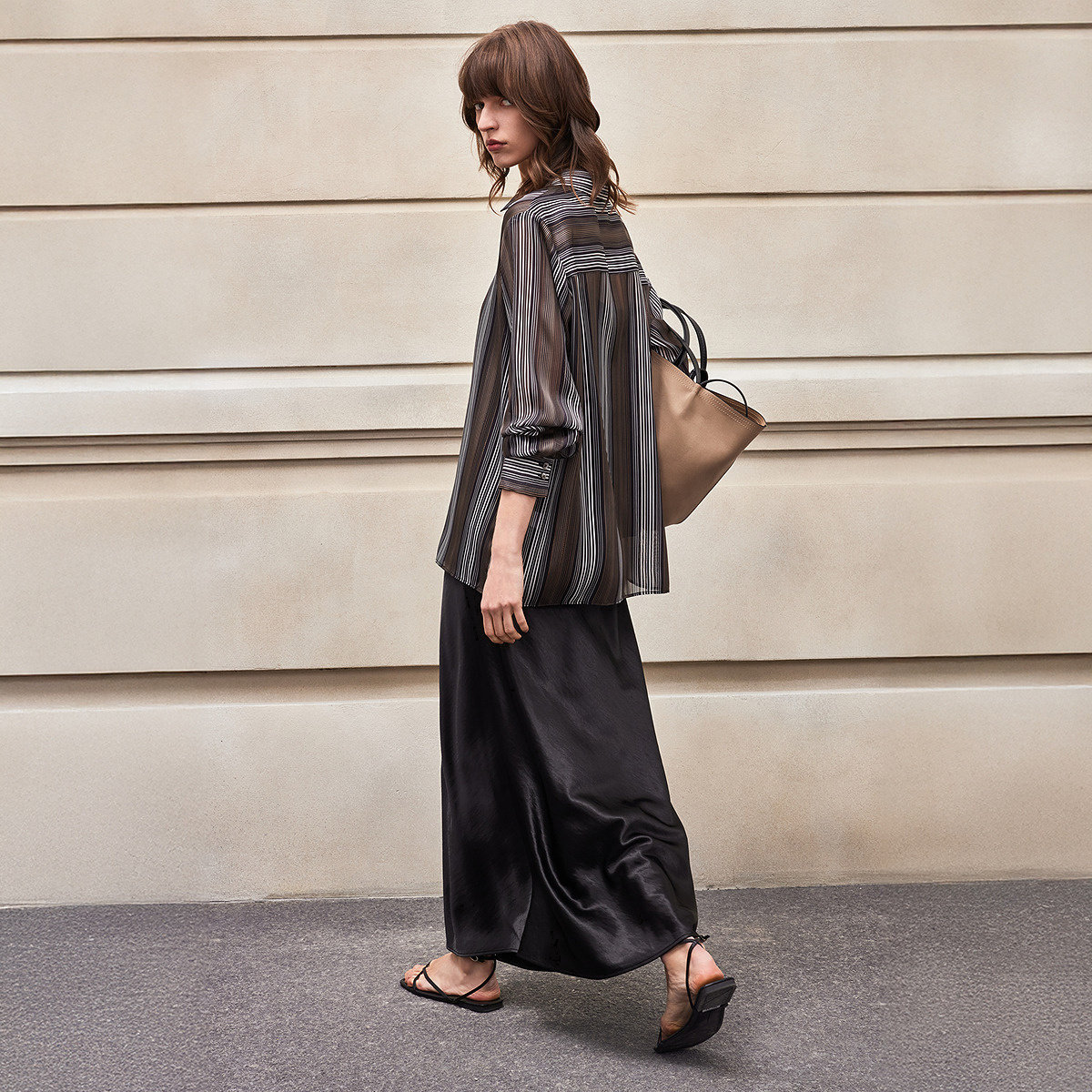BCBG春夏简约通勤时髦气质条纹雪纺提花气质大女主长袖衬衫上衣