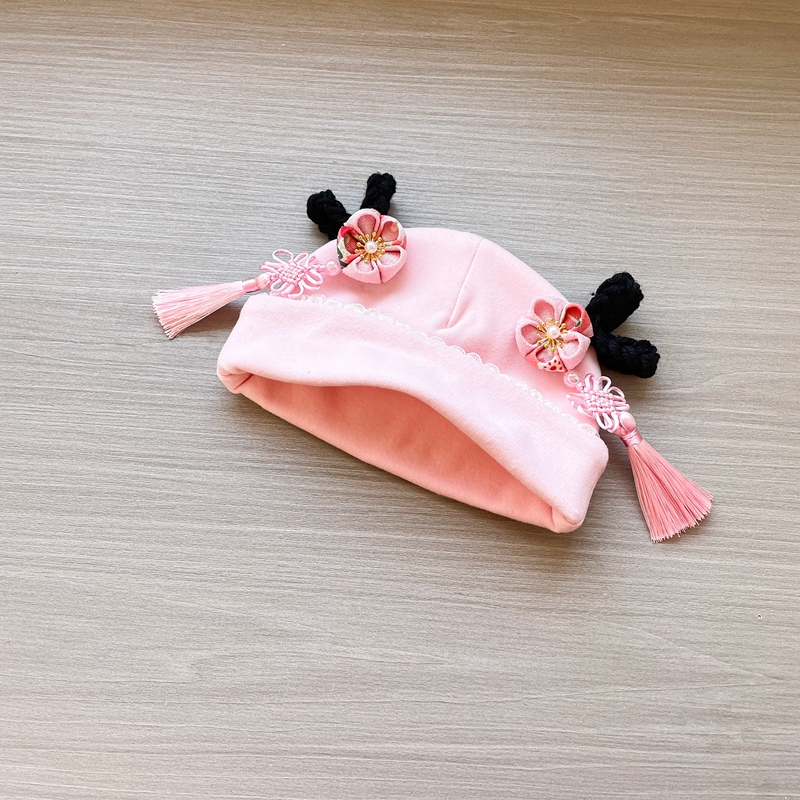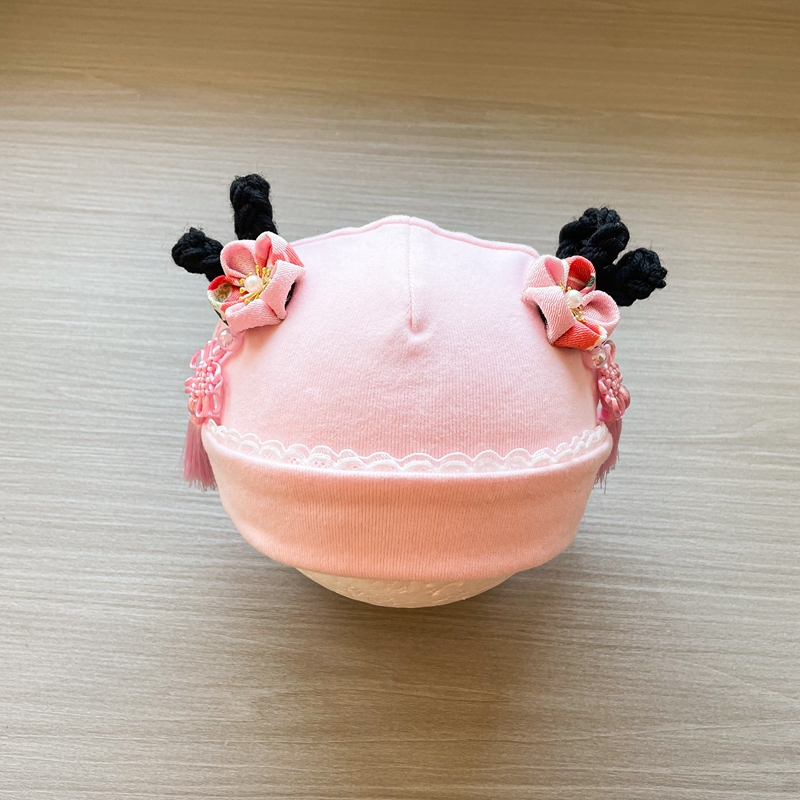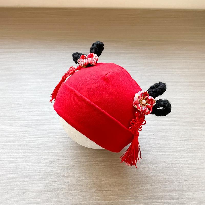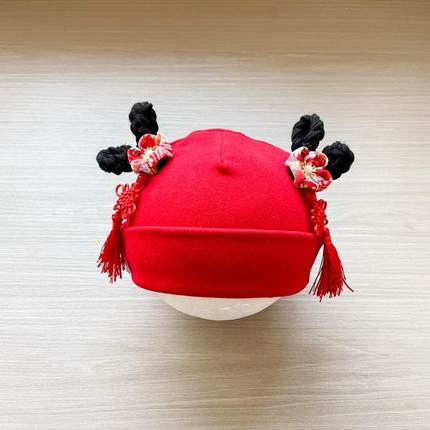 女宝宝可爱公主胎帽春秋棉布帽大红色喜庆中国风婴幼儿小月龄帽子