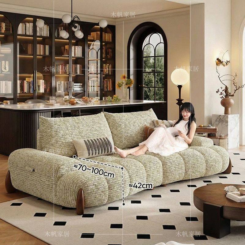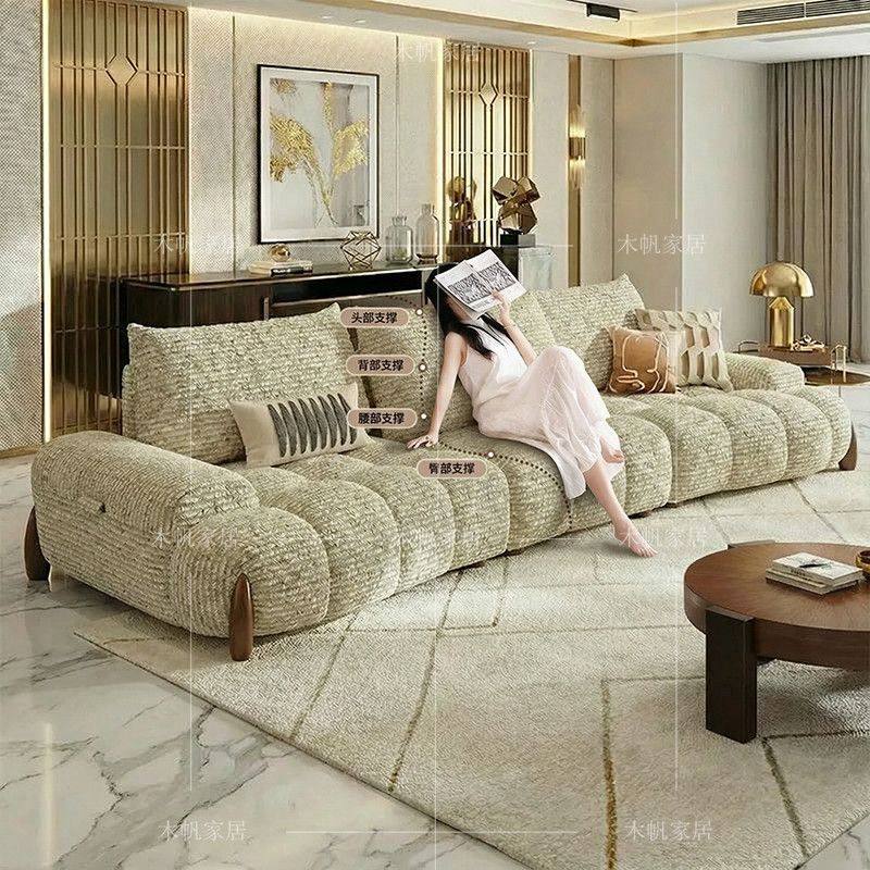 法式奶油风布艺沙发大小户型客厅可调节宽大坐深懒人弧形功能沙发