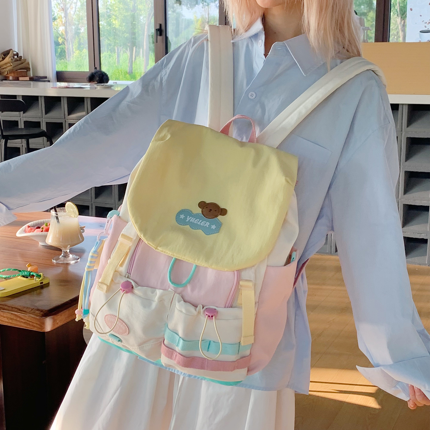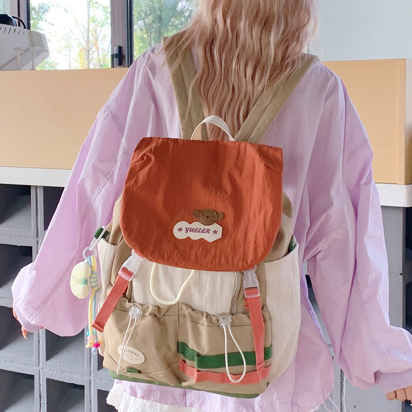 日系多巴胺撞色翻盖双肩包女学生可爱大容量背包初中高中学生书包