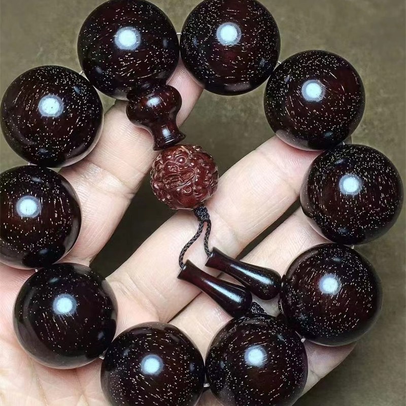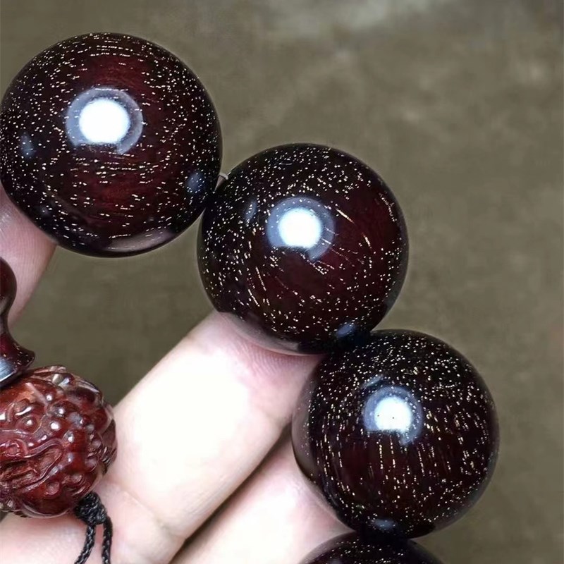 速发小叶紫檀满金星手串男文玩楠木佛珠念宝珠情侣手链首饰