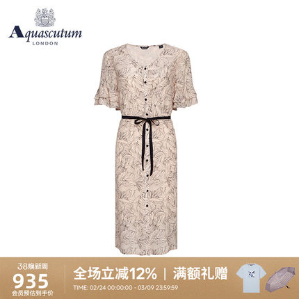 Aquascutum/雅格狮丹夏季女连衣裙V领短袖收腰a字显瘦Q4773EL041