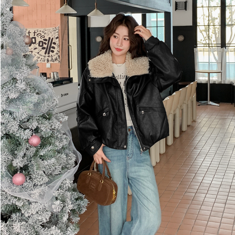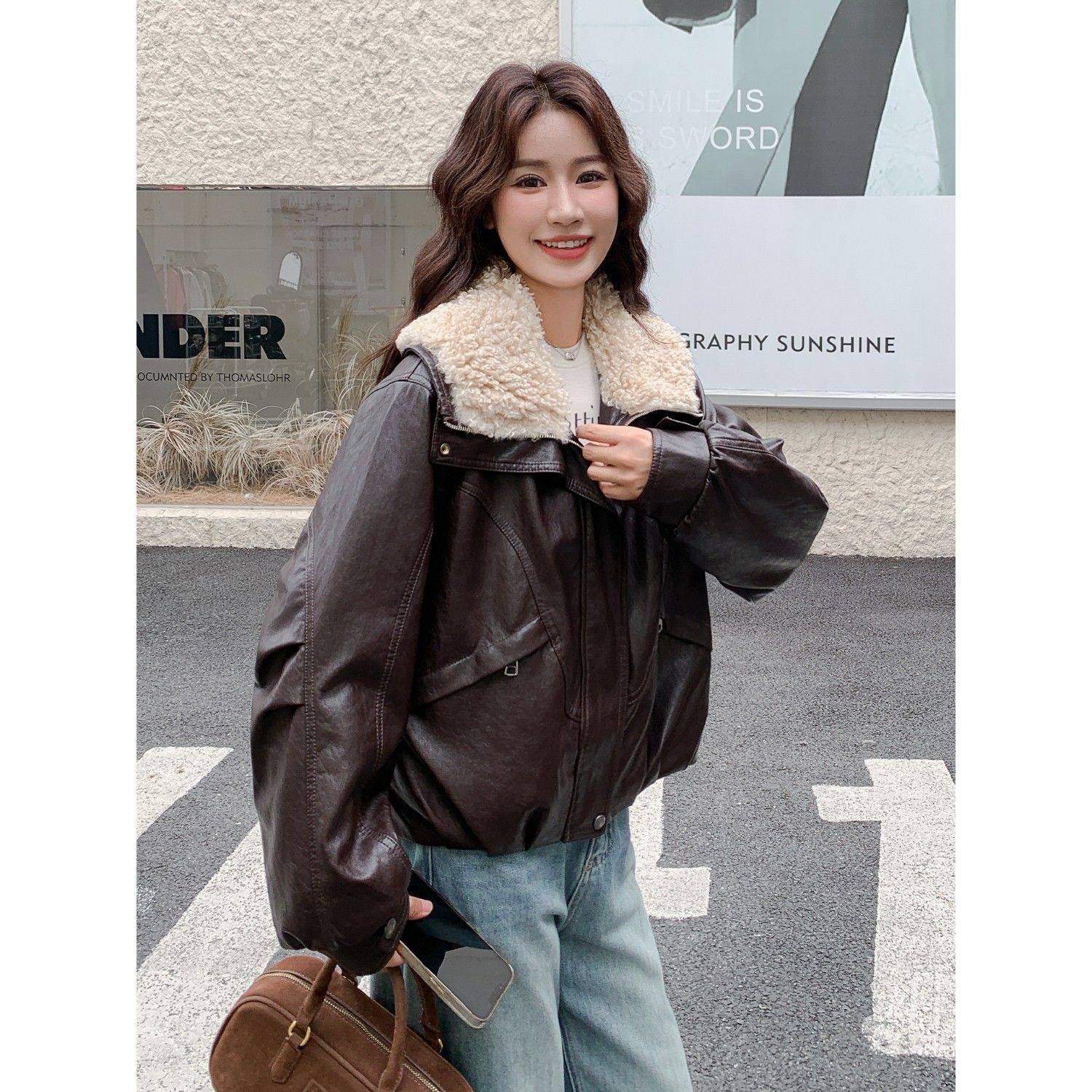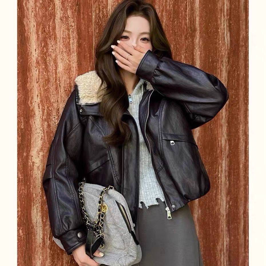 油蜡皮加绒皮外套女短款2025新款今年流行爆款秋冬季加厚巨好看的