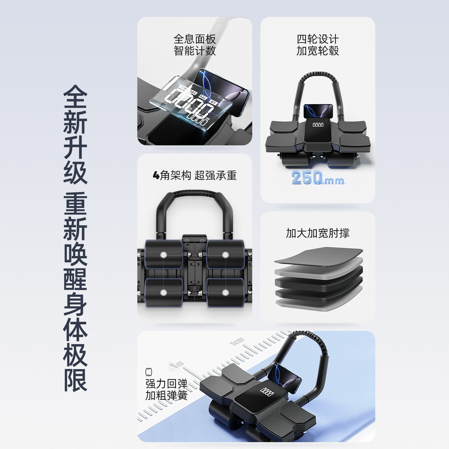 英国新款四轮健腹轮自动回弹2026年收腹部运动练腹肌轮卷腹机神器