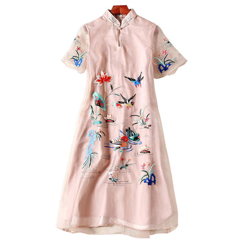 复古刺绣显瘦夏季改良旗袍连衣裙