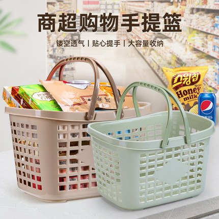 塑料购物篮超市篮加厚大号收纳篮便利店零食啤酒手提篮子买菜筐子