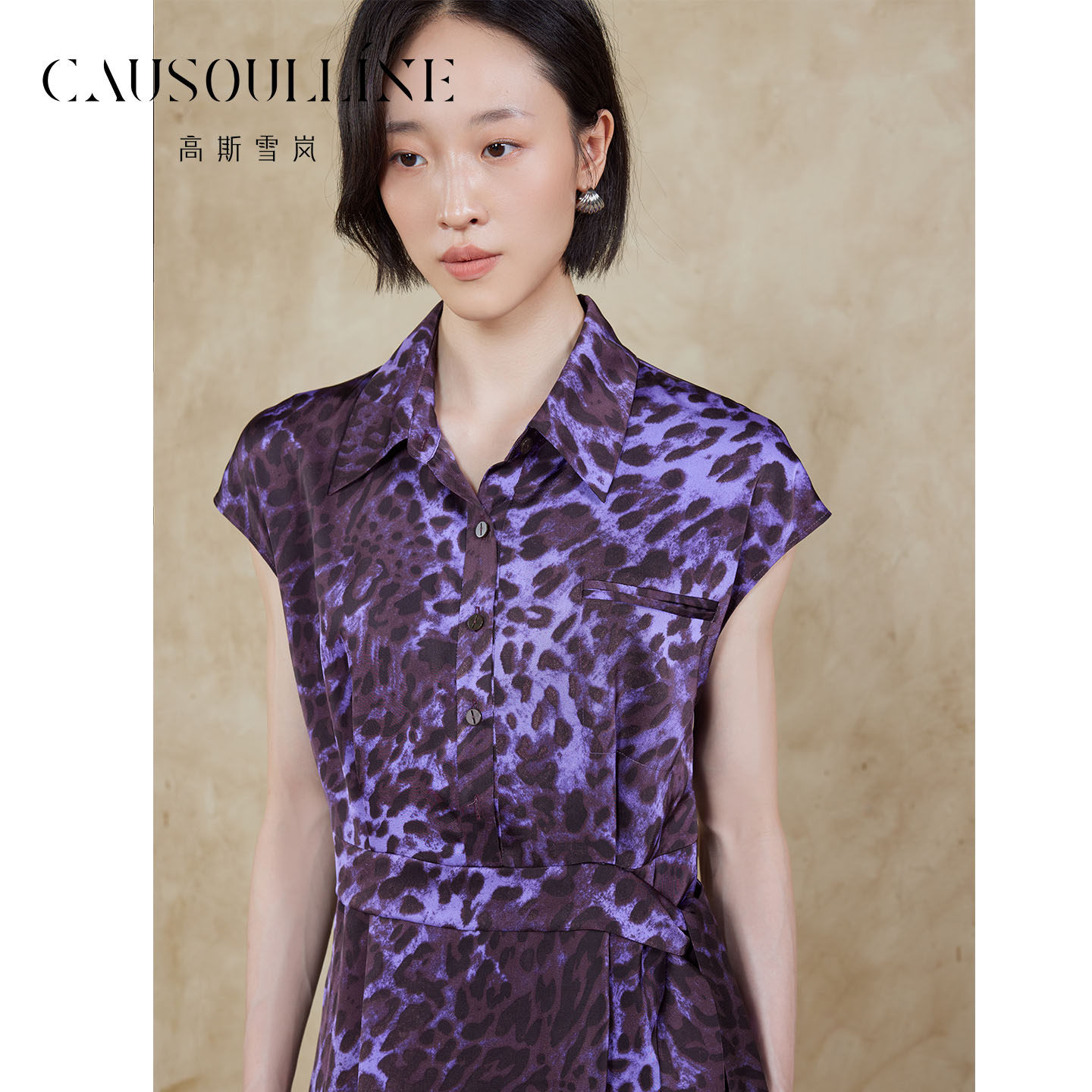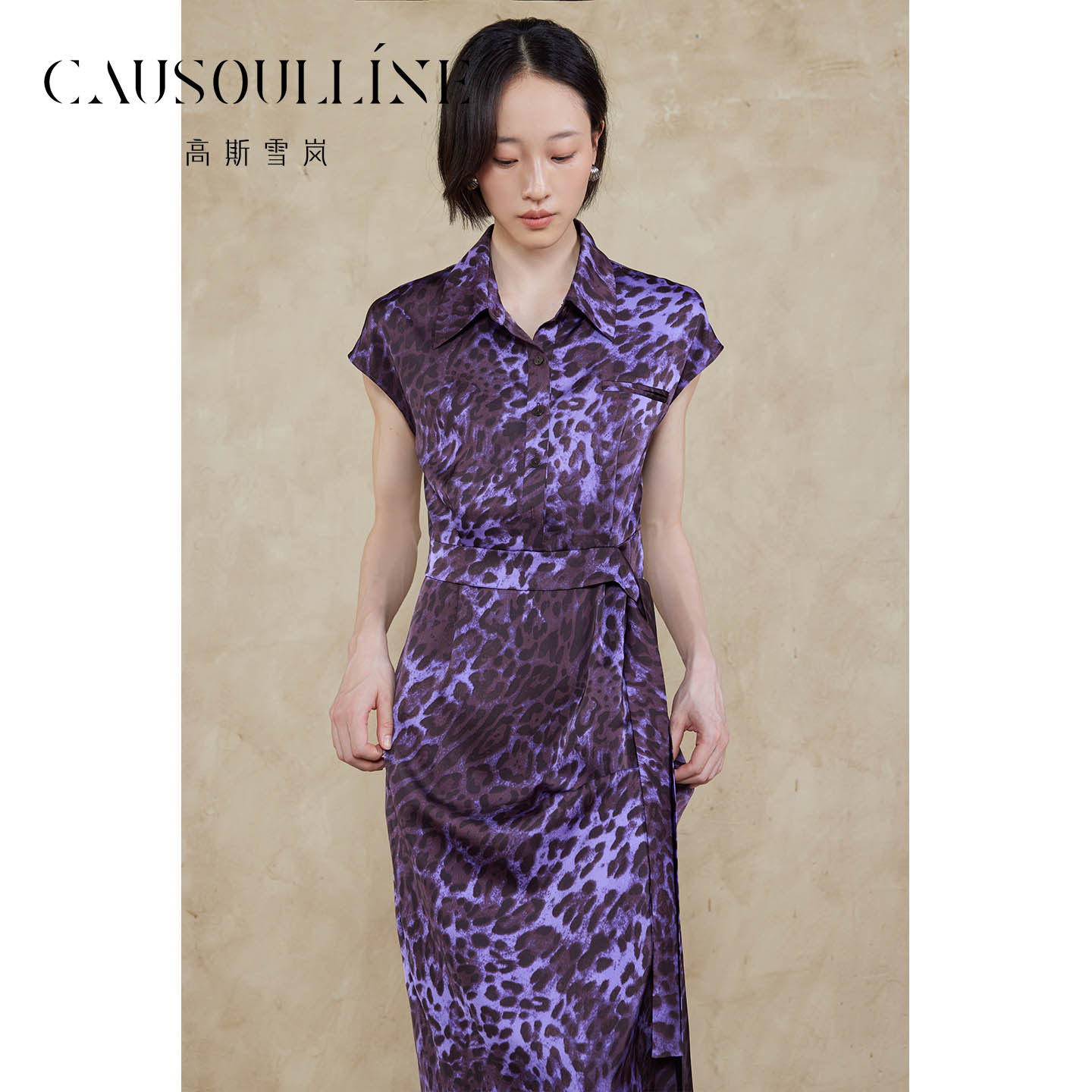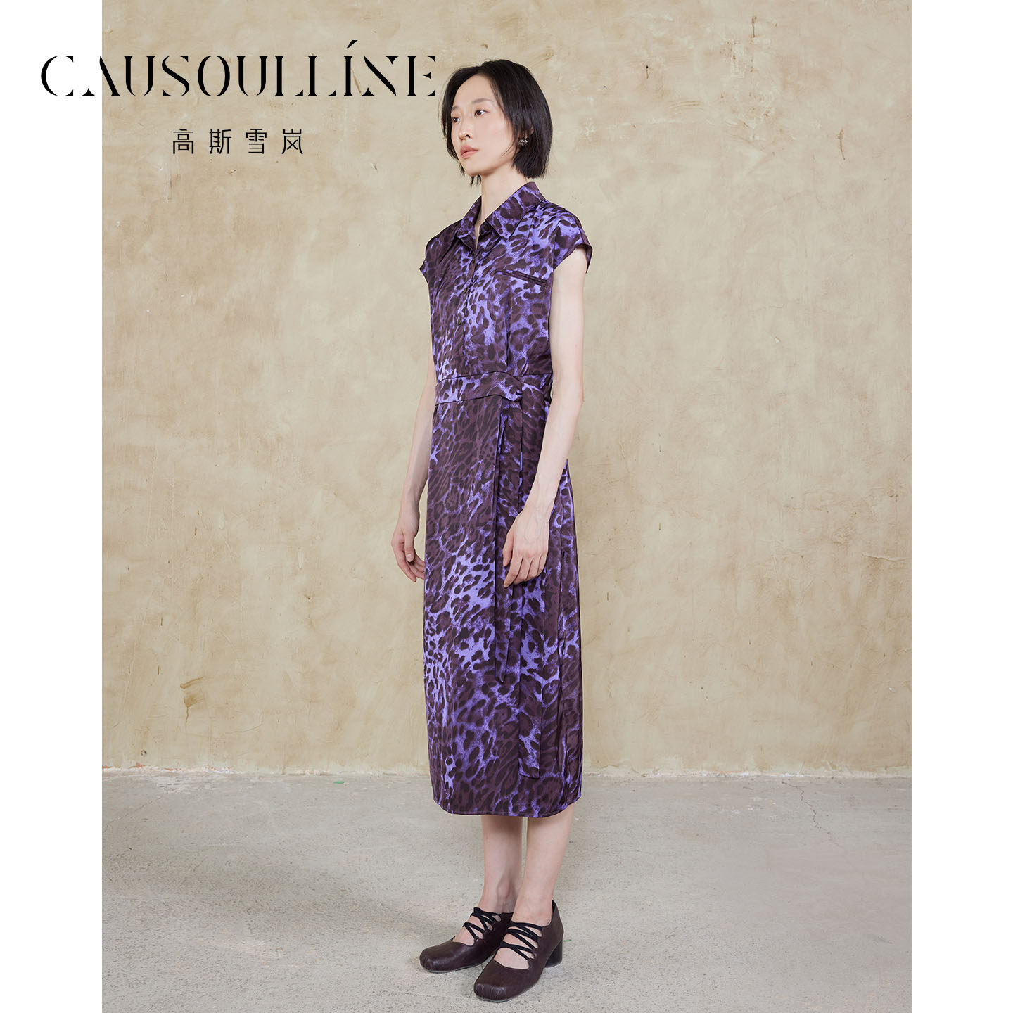 高斯雪岚2025秋新款复古气质连衣裙豹纹收腰裙子商场同款25317306