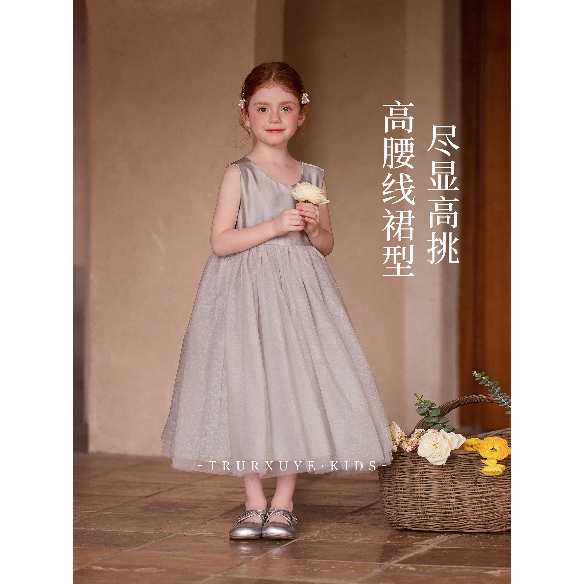 初煦女童夏季无袖背心连衣裙2025新款儿童洋气纱裙女孩公主裙礼服
