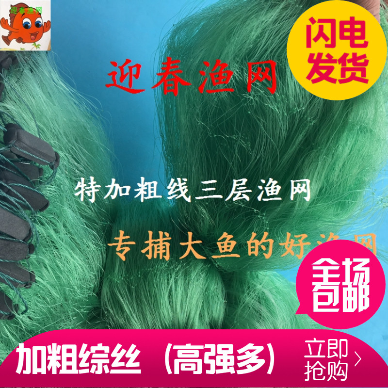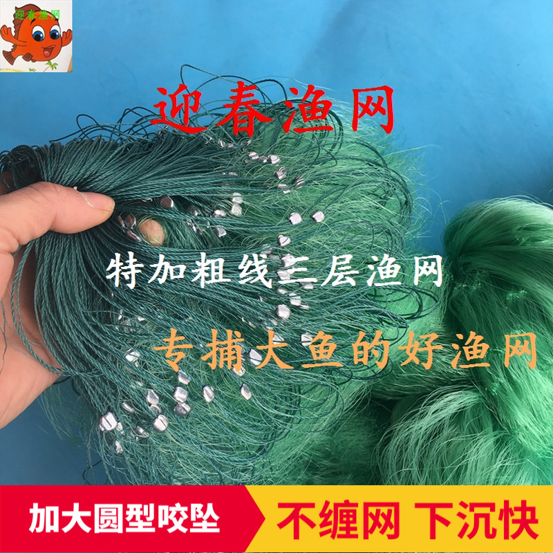 特加粗加重绿色丝4567810指捕大鱼罗非甲鱼三层渔网丝网粘网挂网