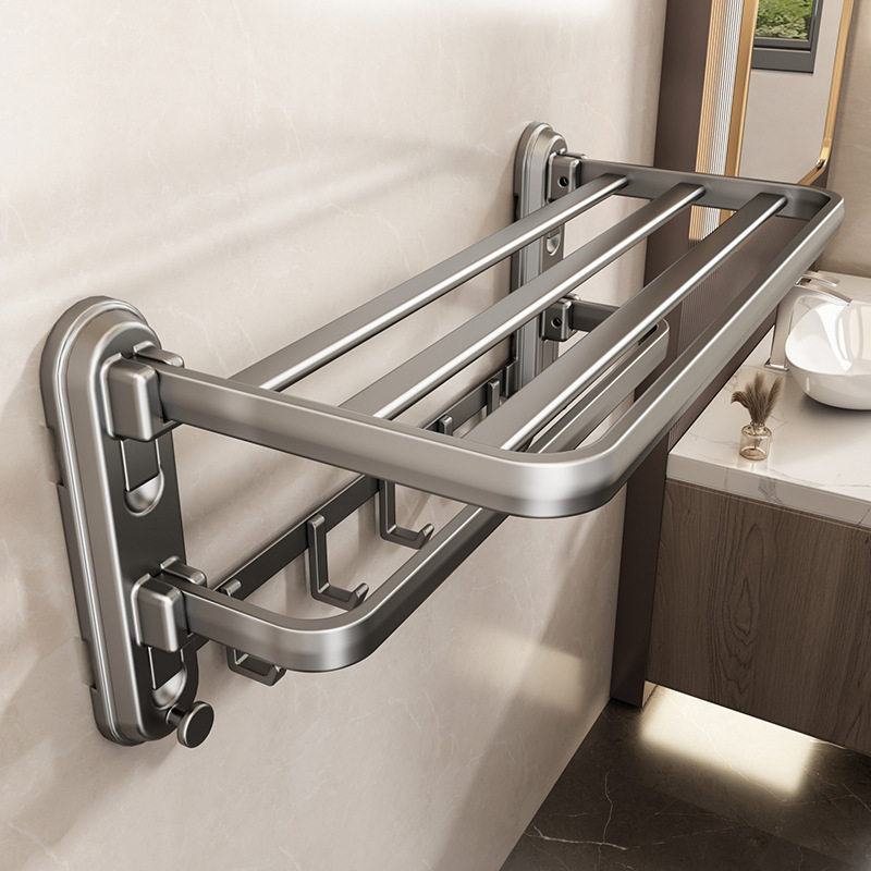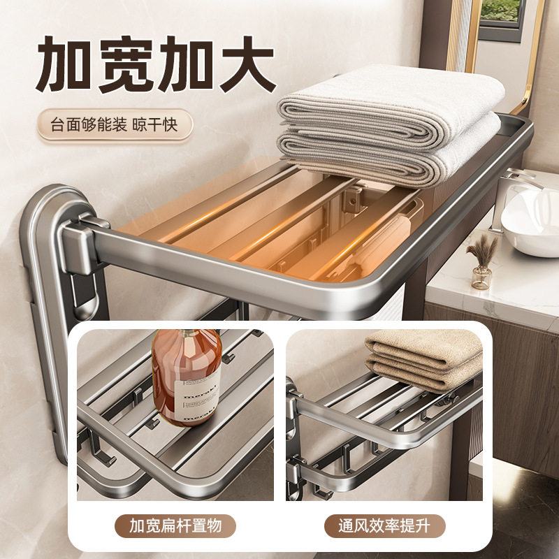 吸盘毛巾架卫生间免打孔浴巾置物架子太空铝厕所浴室挂钩式毛巾挂