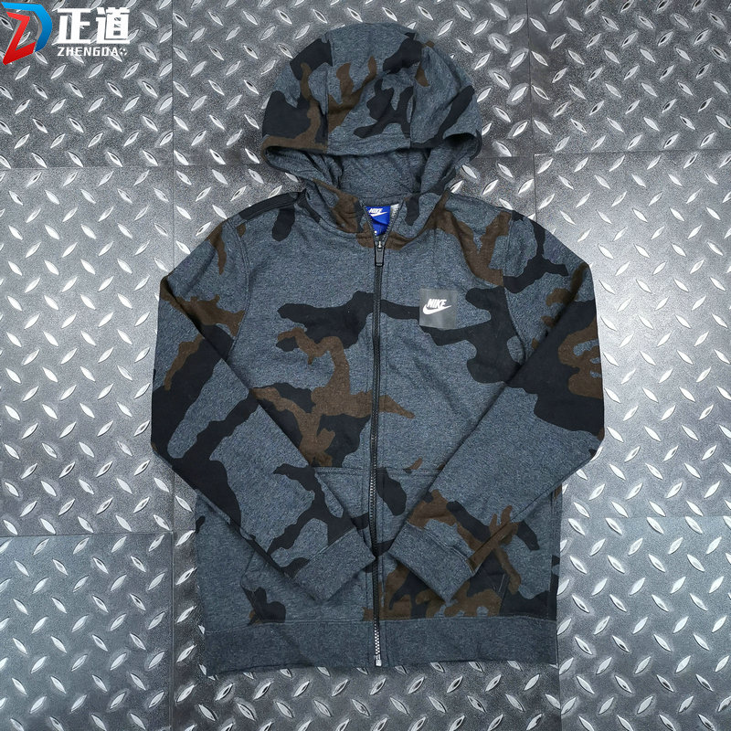 NIKE耐克儿童学生运动迷彩休闲针织加绒保暖连帽夹克外套 AQ5772