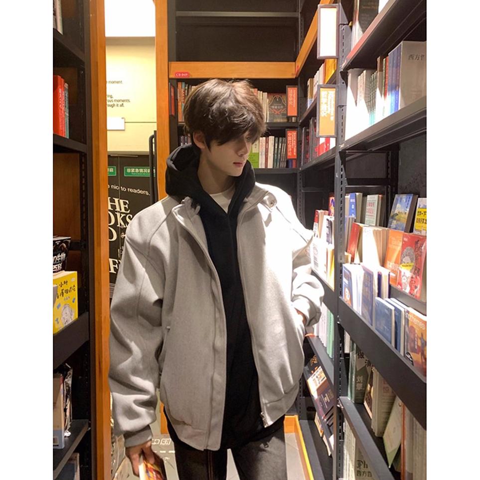 美式街头潮牌立领开衫毛呢夹克男秋冬季宽松cleanfit百搭休闲外套