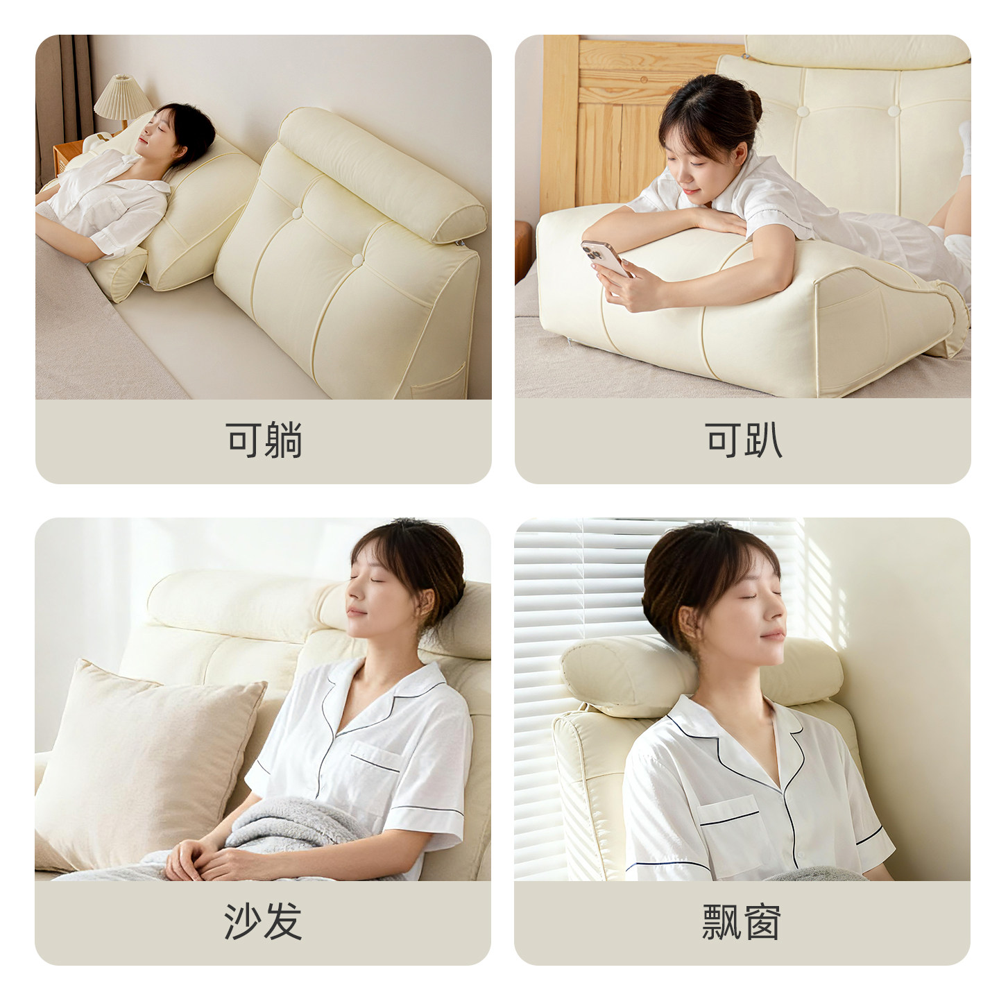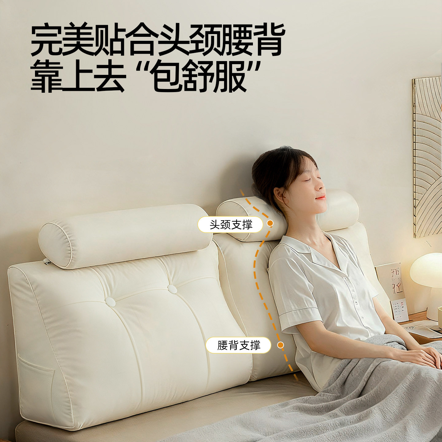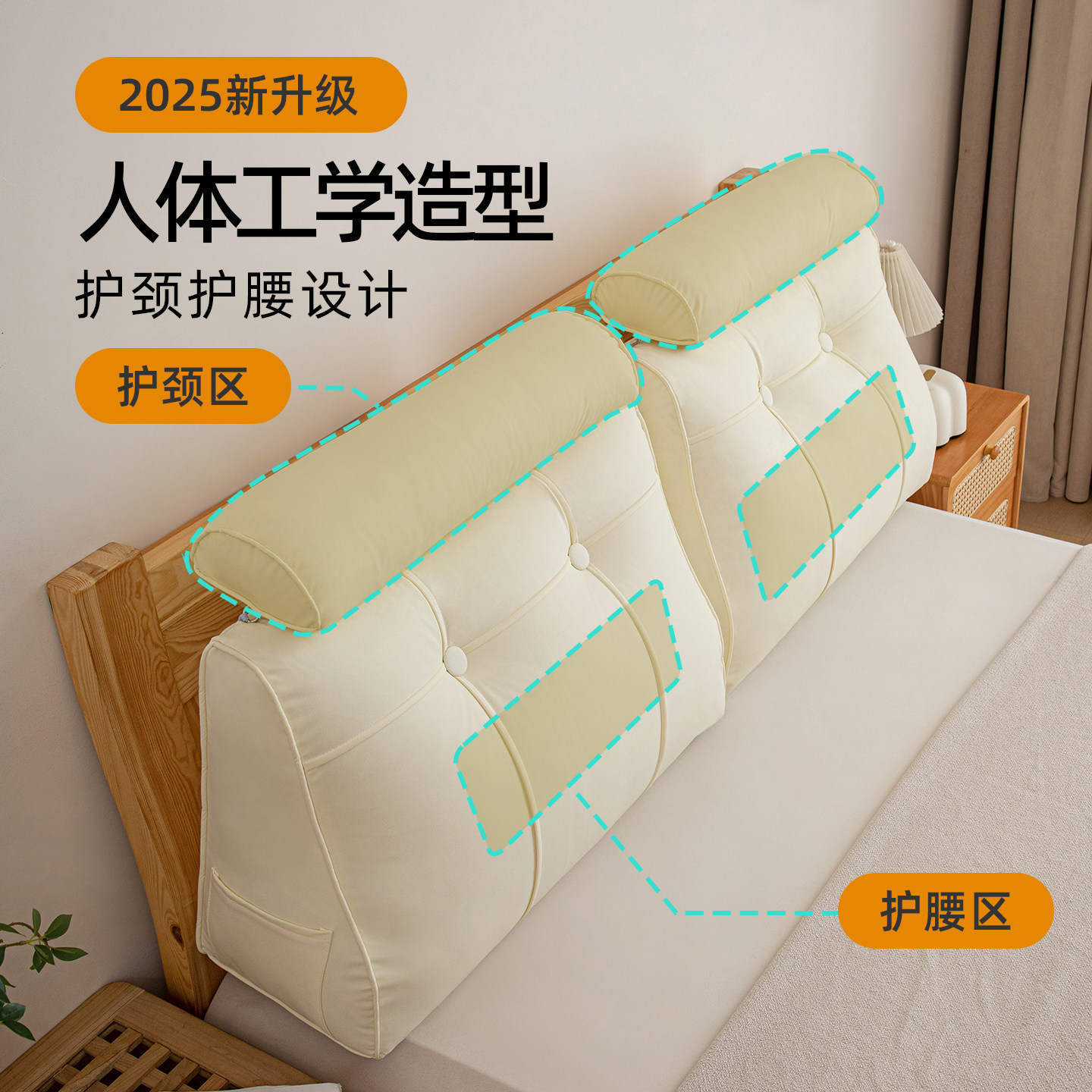 龙憩阁奶油风皮革床头靠背垫床上大靠枕无床靠飘窗半躺垫护颈靠枕