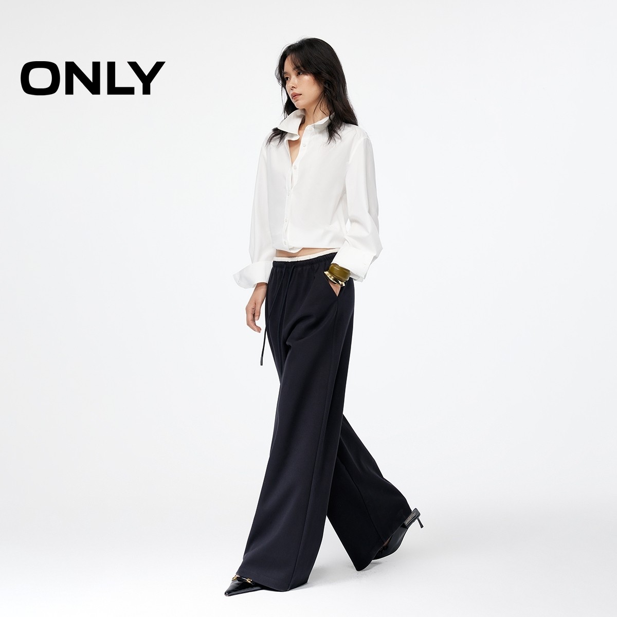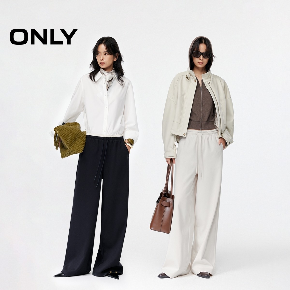绫致ONLY2025秋冬新款休闲风设计人字呢直筒裤长裤休闲裤女