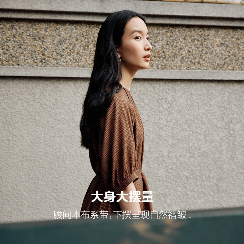 播格子圆领短袖衬衫女24夏季新款商场同款宽松休闲上衣BDR2HD0936