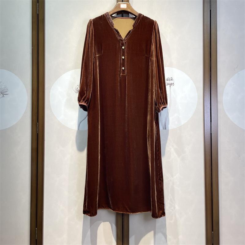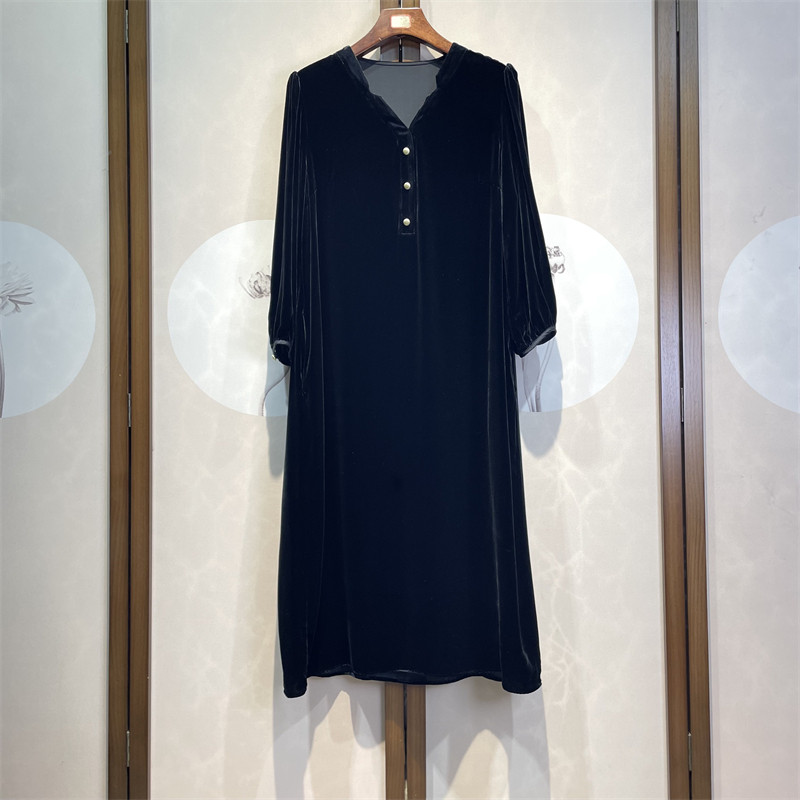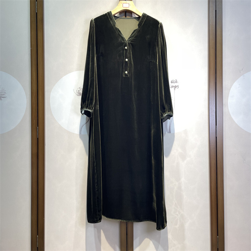 杭州真丝丝绒高端轻奢春秋新款直筒版宽松显瘦长袖透气连衣裙13下