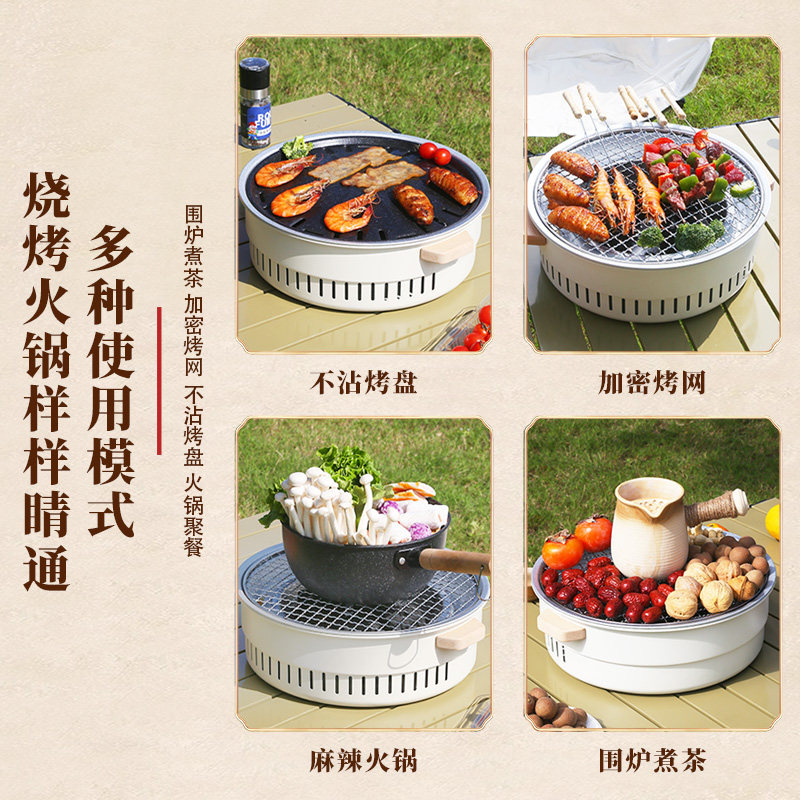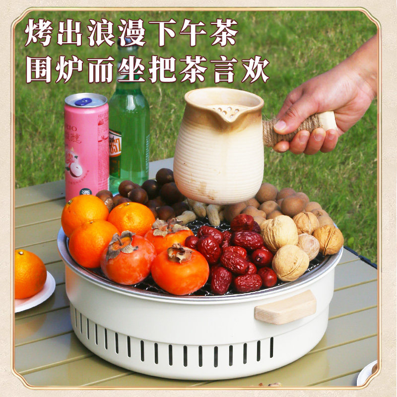 围炉煮茶烤火炉套装室内烧烤炉子家用烧烤架户外取暖火盆器具全套