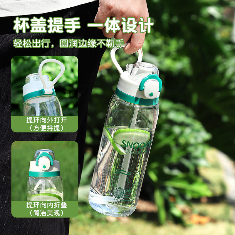 史努比双饮男女生高颜值随行水杯便携塑料运动吸管水壶夏季大容量