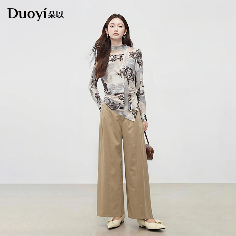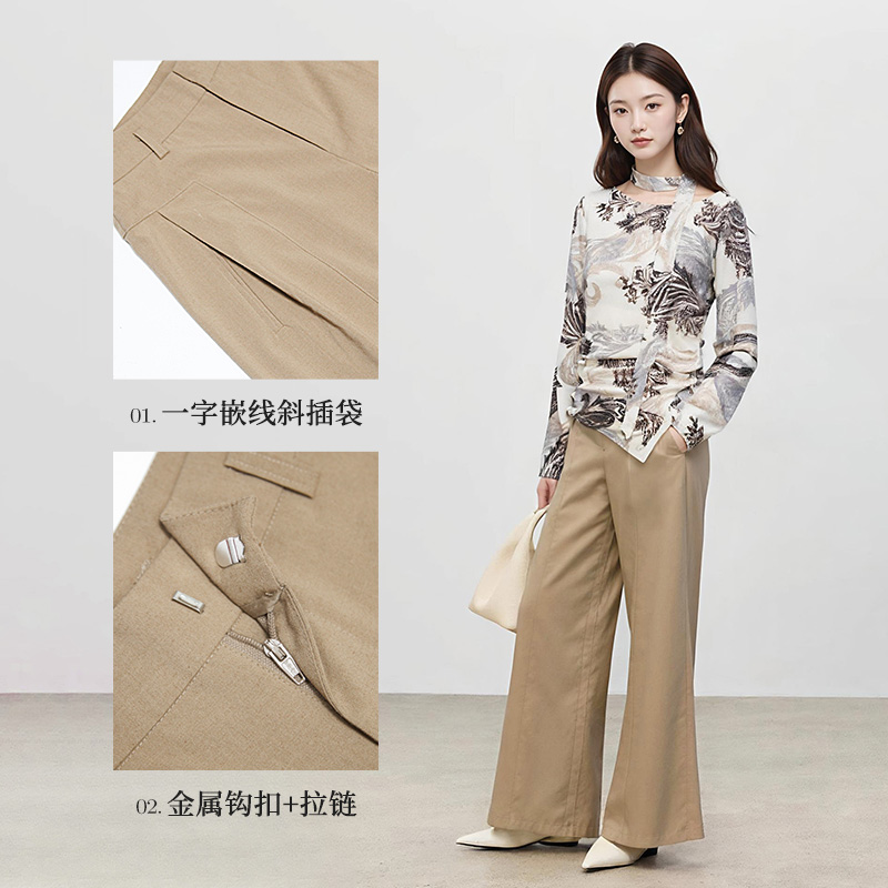 朵以2025秋季新款通勤简约压褶显瘦藏肉阔腿裤高腰宽松长裤子女