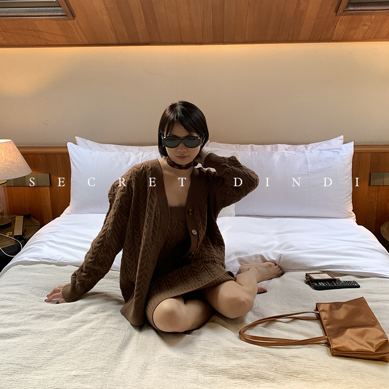 SECRET DINDI 美拉德 麻花多穿法加厚针织套装裙女冬季复古两件套