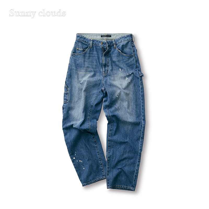 Sunny clouds 男式纯棉宽松漆点装饰牛仔裤直筒长裤秋冬