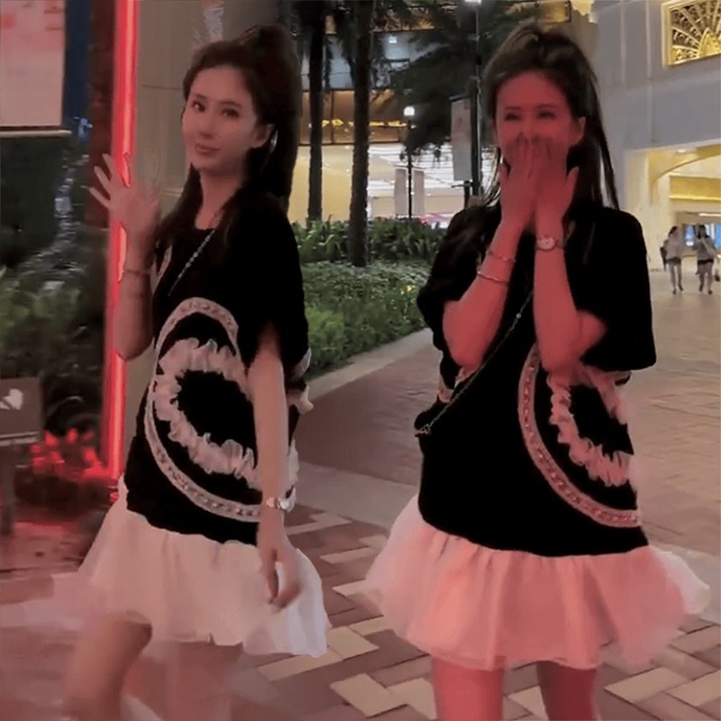 新款韩版网纱休闲时尚短袖连衣裙女夏中长款T恤减龄宽松显瘦A字裙