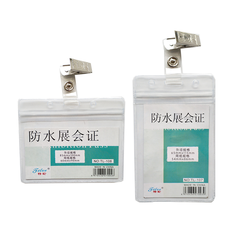 包邮透明横式证件卡胸卡卡套软工作证胸牌工作牌上岗证带夹子塑料