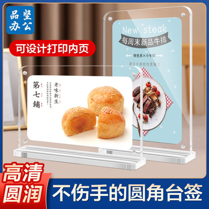 餐桌圆角立牌亚克力展示牌a4高品质亚克力台牌强磁台签广告牌餐厅台卡桌牌定制酒店台面菜品告示牌桌面展示架