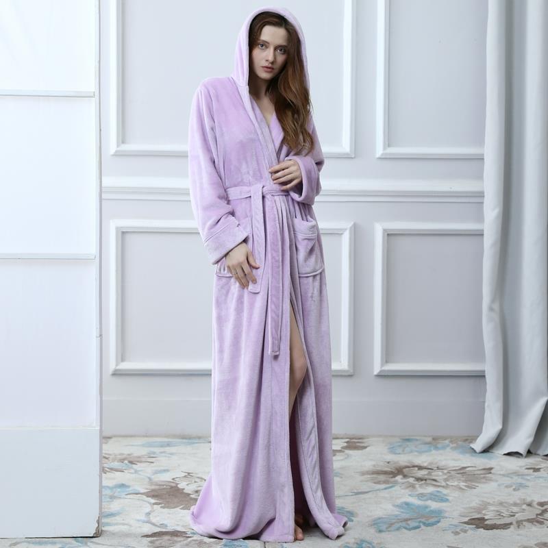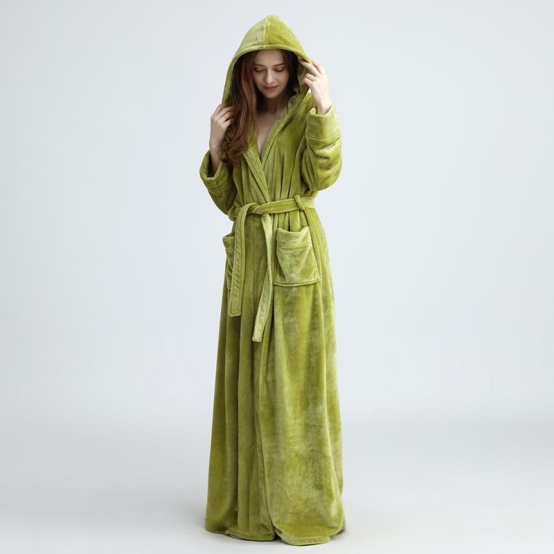 秋冬睡袍女式秋冬款长法兰绒长袍加厚加绒加长款珊瑚绒睡衣1009c