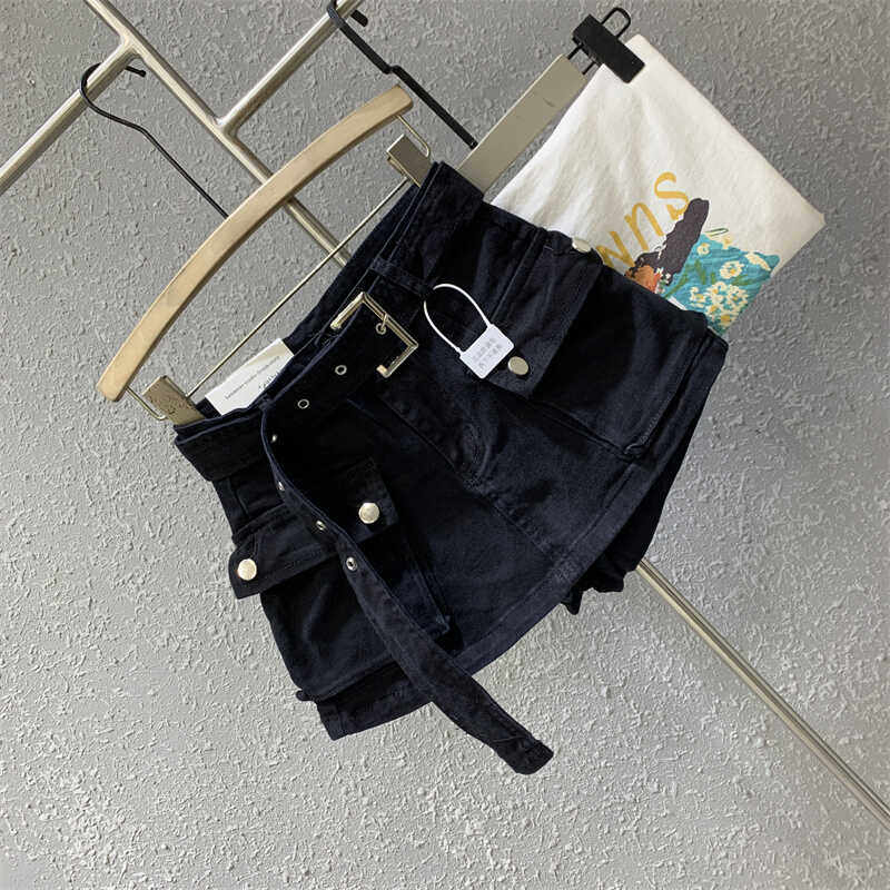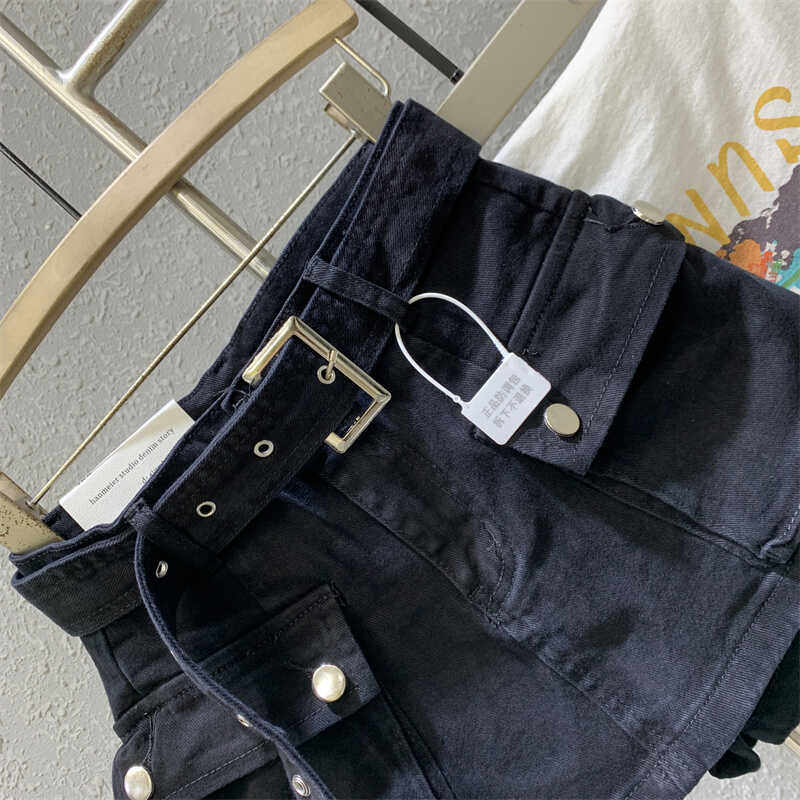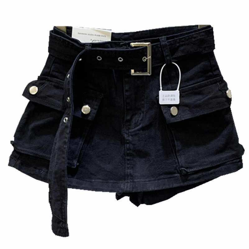 夏季大口袋女牛仔短裙裤新款三分时尚裤裙美式工装复古牛仔半身裙