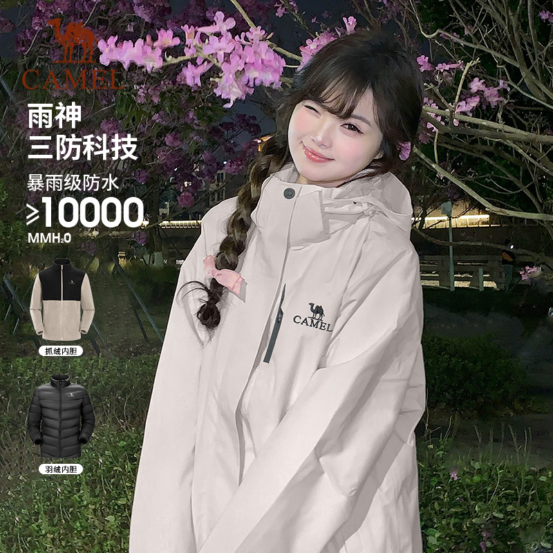 骆驼可拆卸三合一冲锋衣抓绒内胆