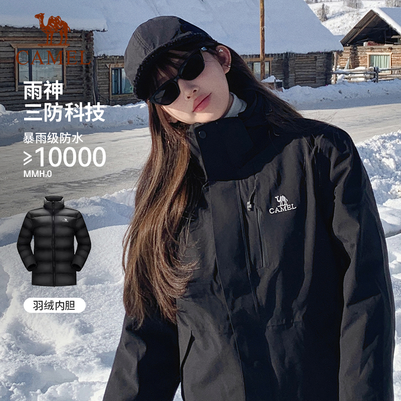 骆驼粉色冲锋衣女款小个子秋冬新款户外三合一保暖羽绒内胆外套