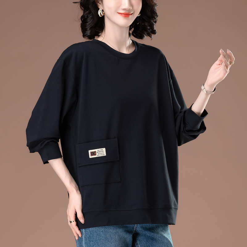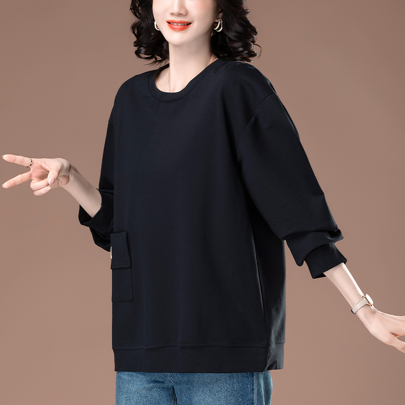卫衣女春秋新款加肥加大码女装宽松中年妈妈纯棉圆领遮肚显瘦上衣
