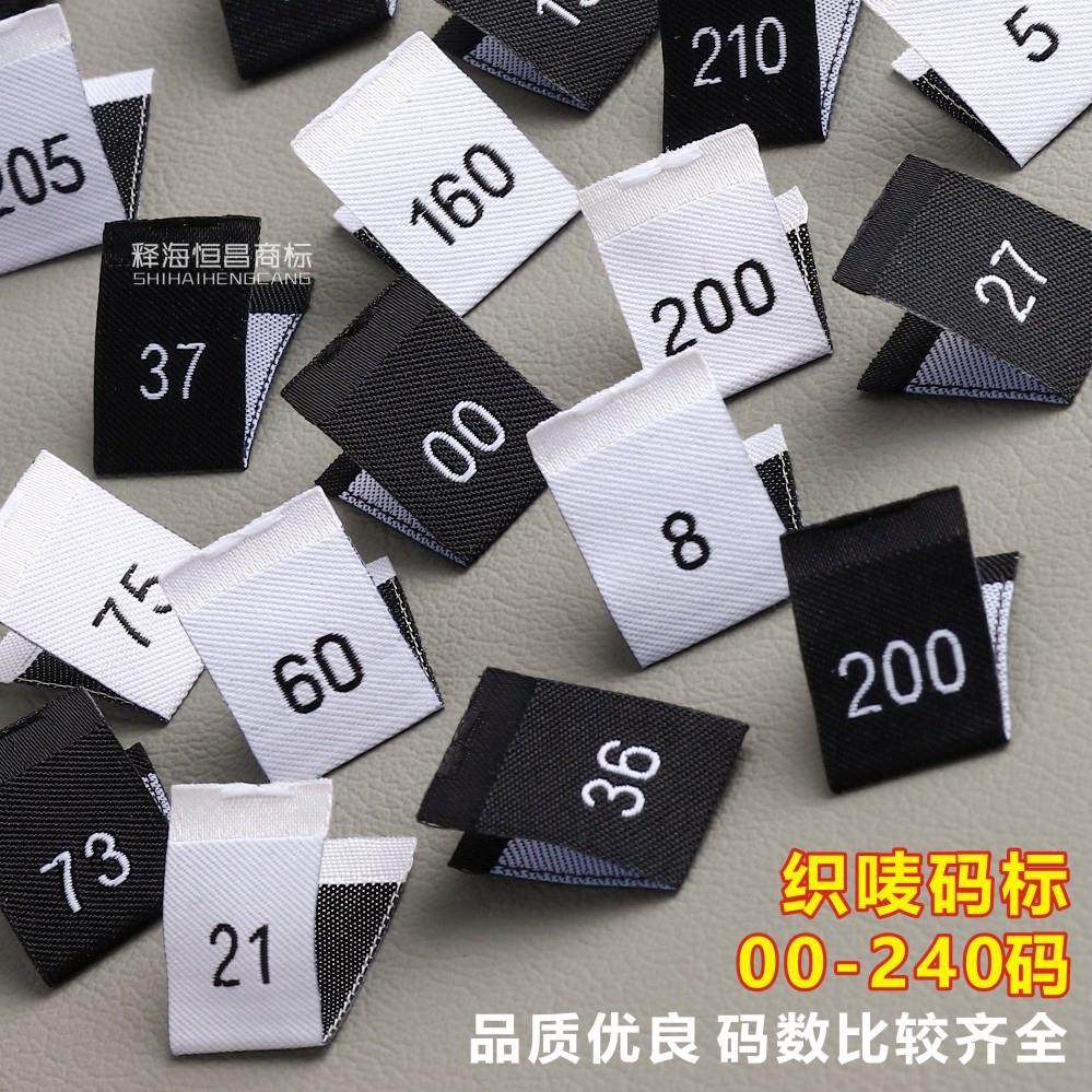 尺码标现货 数字50至200#对折工号标黑白色 服装通用织唛号码布标