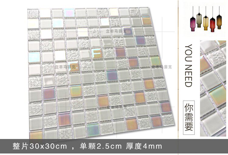 白色幻彩水晶玻璃马赛克瓷砖客厅玄关电视背景墙卫生间吧台