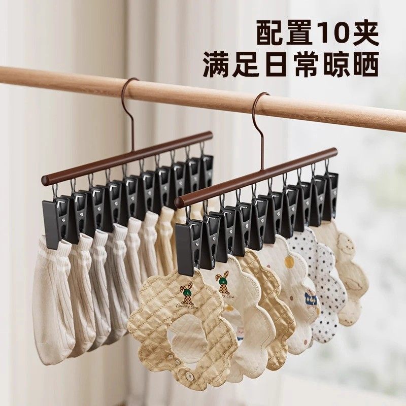 高档轻奢中古风多夹子晾衣架防水